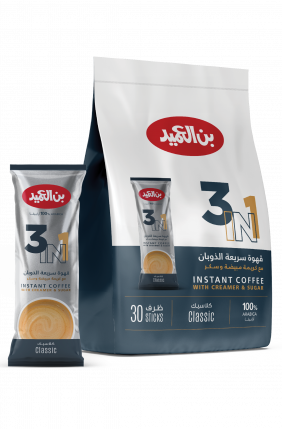 Ameed 3 in 1 Strong, crafted for those who crave a bolder coffee experience. Made with premium 100% Arabica Colombian Instant coffee, rich creamer, and just the right amount of sugar, this blend delivers a more intense flavour with every sip.